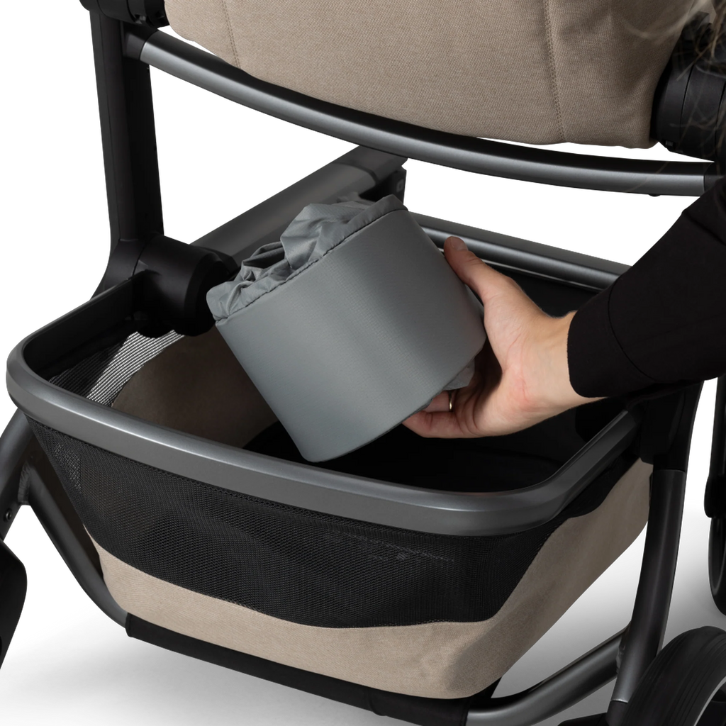 La tablette est fixée en position horizontale pour éviter que son contenu se renverse, même lorsque le siège est incliné. Et si le plateau se salit, il suffit de le détacher de la poussette et de le passer au lave-vaisselle.