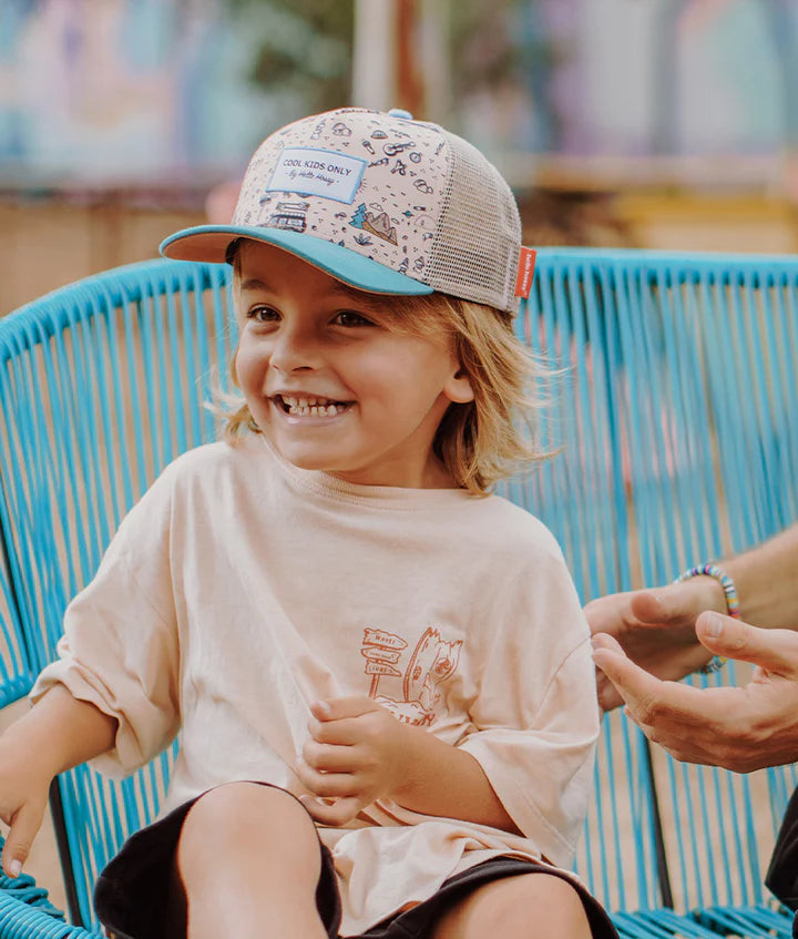 Bonnet Enfants - Coton bio, Little Gang, bleu clair vert foncé (divers tailles, 1-6 ans)