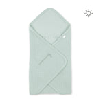 La couverture enveloppante s’installe directement sur la coque et grâce à son ingénieux système d’ouvertures zippées, il est très simple de faire passer les ceintures afin de fermer correctement le harnais de sécurité au plus près du corps de bébé. Convient pour un bébé de 50 à 75 cm.