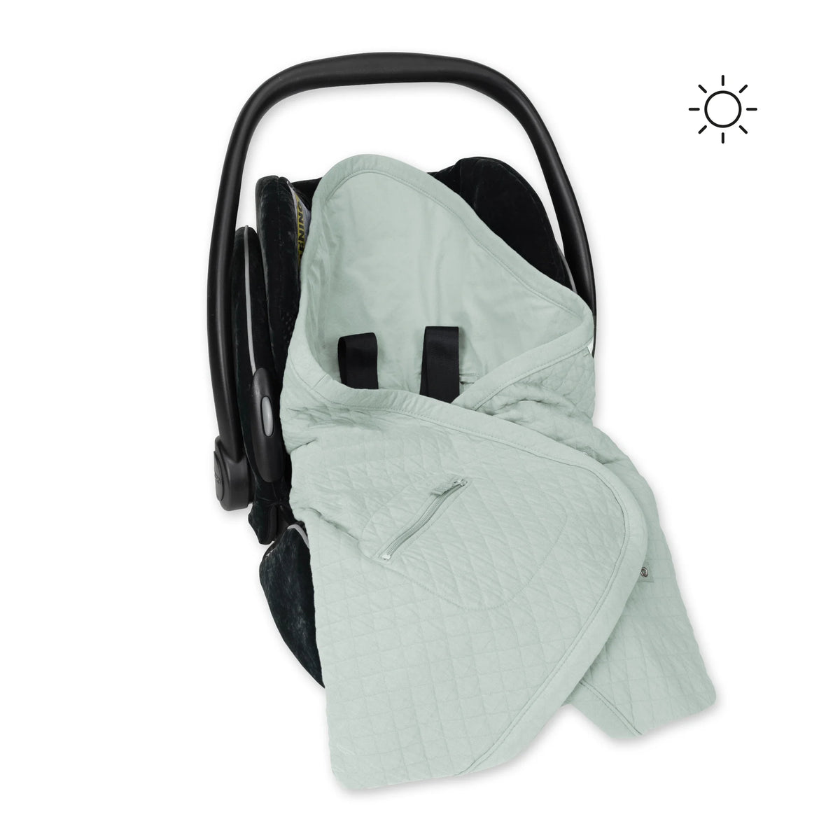 Sécurité assurée, la couverture améliore le confort et protège le siège bébé.