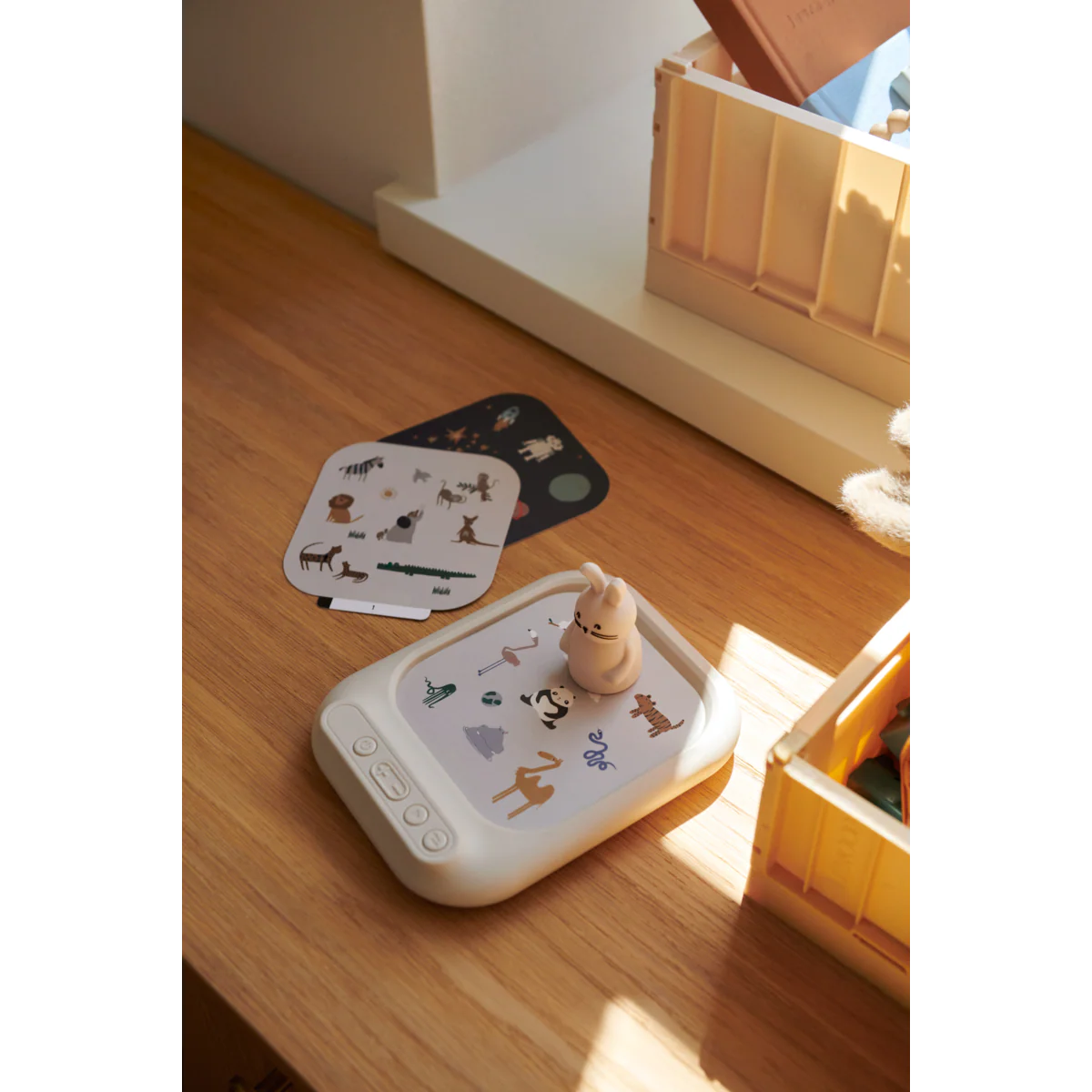 Laissez votre enfant explorer différents mondes avec le tableau sonore éducatif ARCHIE. Insérez simplement l'une des six cartes thématiques, comme la ferme, la forêt ou l'espace, puis placez la figurine de lapin pour écouter les sons correspondants. Des cris d’animaux aux lancements de fusées, chaque thème encourage la curiosité et l’apprentissage.