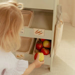 Bienvenue sur le marché ! Avec ce magnifique stand en bois, les enfants peuvent jouer à leur propre boutique. Le store en tissu donne une ambiance de marché authentique et avec le petit tableau noir et les cartes avec illustrations, ils peuvent joliment exposer les produits. Le set comprend également un sac de courses et des caisses pour une véritable sensation de magasin. Retournez le stand et il devient un café, complet avec menu et illustrations joyeuses. Combinez avec la caisse enregistreuse, la balance ou l'étagère à gâteaux pour encore plus de plaisir de jeu. Qu'est-ce qu'il y a au menu aujourd'hui ?