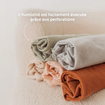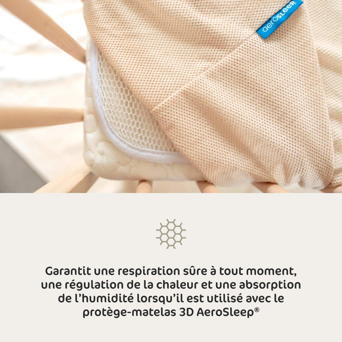 Les propriétés des matelas et protège-matelas perméables à l’air s’atténuent lorsqu’on les recouvre d’un drap-housse trop épais. Voilà pourquoi AeroSleep a conçu un drap-housse tout doux taillé dans un tissu respirant, qui participe à une circulation de l’air optimale.