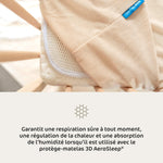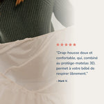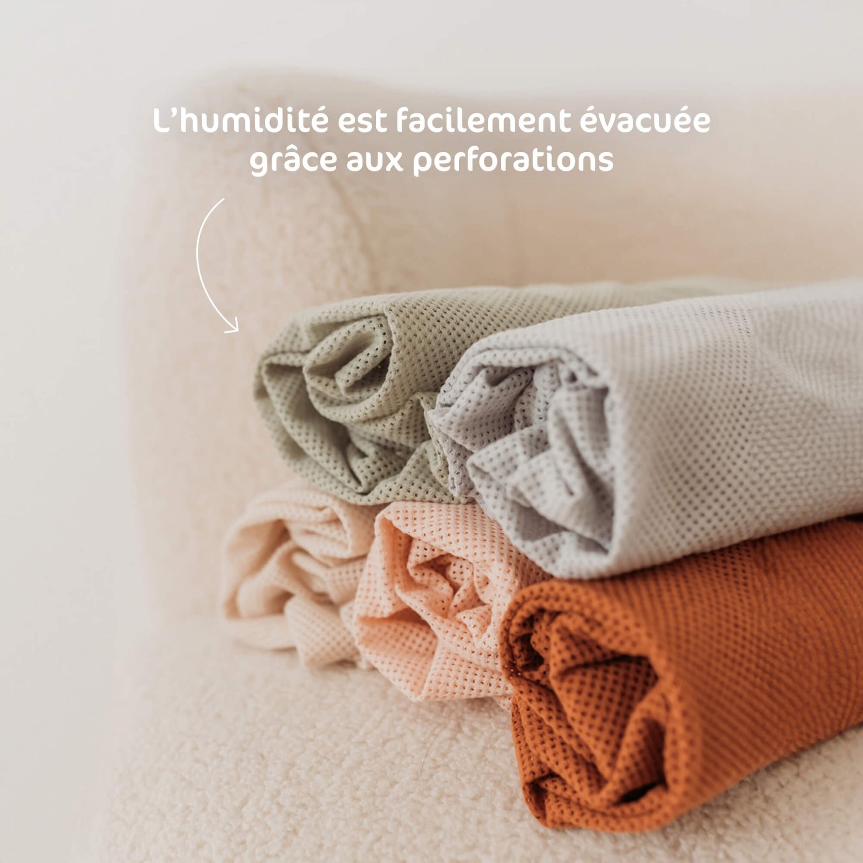 Grâce à la structure ouverte de ce tissu, l’air peut circuler librement à travers la structure 3D de notre protège-matelas . Combiné à l’un de nos  matelas pour bébés bien fermes, le drap-housse Baby Fitted Sheet assure à votre tout-petit un sommeil sûr et confortable, tout en étant très simple d’emploi pour vous, parent.