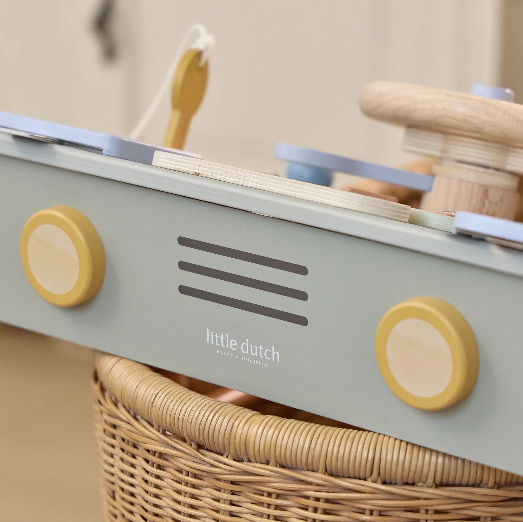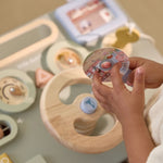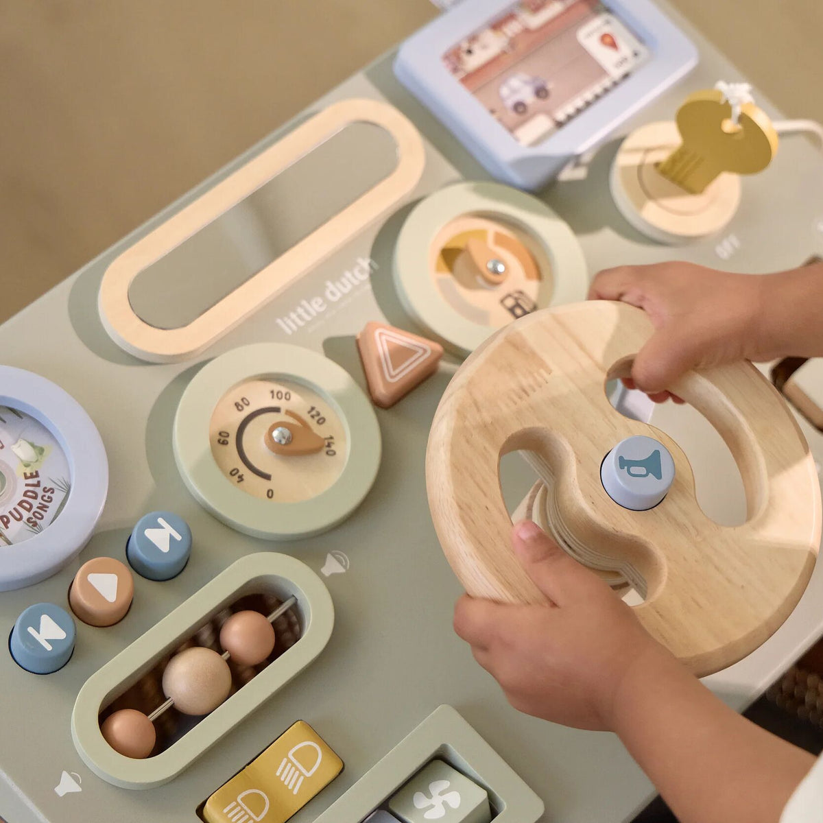 Partez à l'aventure avec ce volant d'activités en bois ! Tournez le volant, appuyez sur les boutons et découvrez les sons joyeux. Avec les cartes fournies, votre enfant peut déterminer lui-même l'itinéraire. Le bois solide et les couleurs douces en font un magnifique jouet pour les explorateurs curieux. Parfait pour jouer ensemble et stimuler l'imagination.