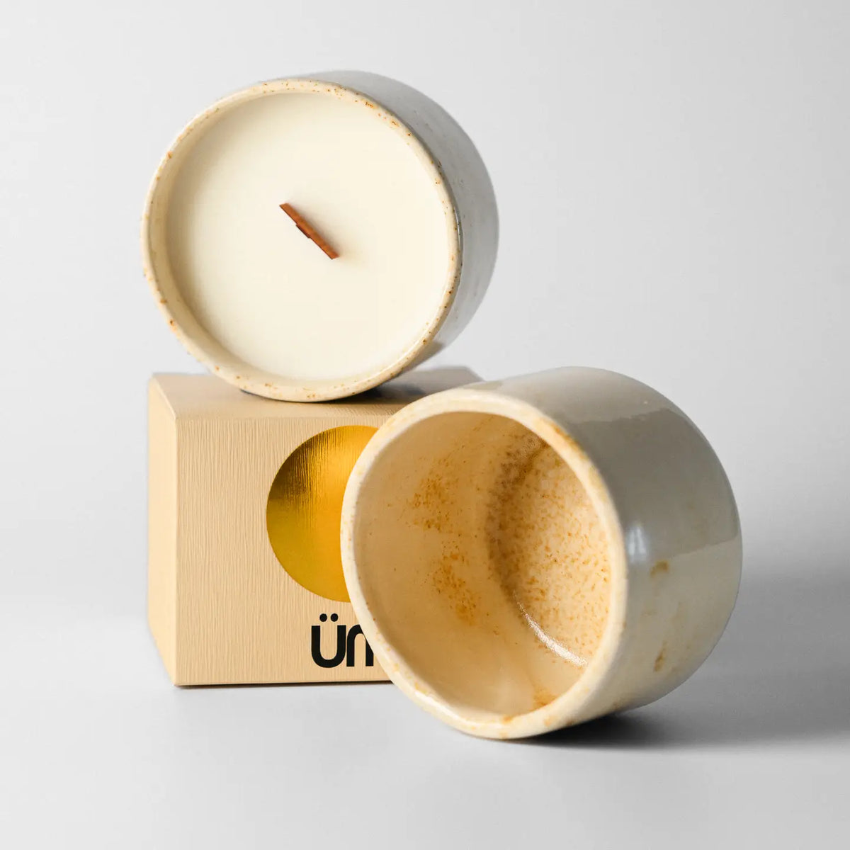 Cette bougie est fabriquée avec de la cire de soja de qualité supérieure, une mèche en bois/coton renforcée et contient une forte charge d'huiles essentielles parfumées sans parabènes ni phtalates. Coulée à la main avec soin dans notre atelier dans le sud de l'Espagne dans une tasse en grès faite à la main, conçue pour être réutilisée. Une fois la bougie terminée, vous pouvez choisir une recharge durable ou profiter de votre tasse pour le café, le thé ou toute autre boisson. Chaque motif de glaçure est unique, créé à l'aide de notre technique artisanale unique. Emballée en toute sécurité dans notre boîte de marque avec une couche de carton protectrice.
