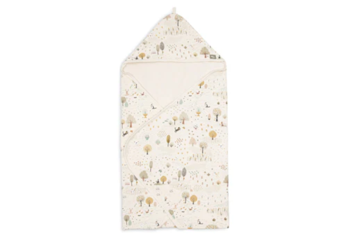 Cette cape de bain toute douce est parfaite pour sécher bébé après le bain. L’extérieur est en jersey doux avec un joli imprimé Tiny Park, et l’intérieur en éponge moelleuse couleur oatmeal assure un confort optimal. Avec son format 75x75 cm, elle est idéale pour envelopper votre petit après un bon bain.