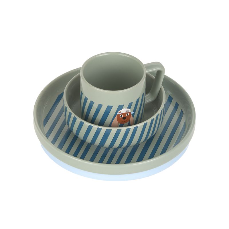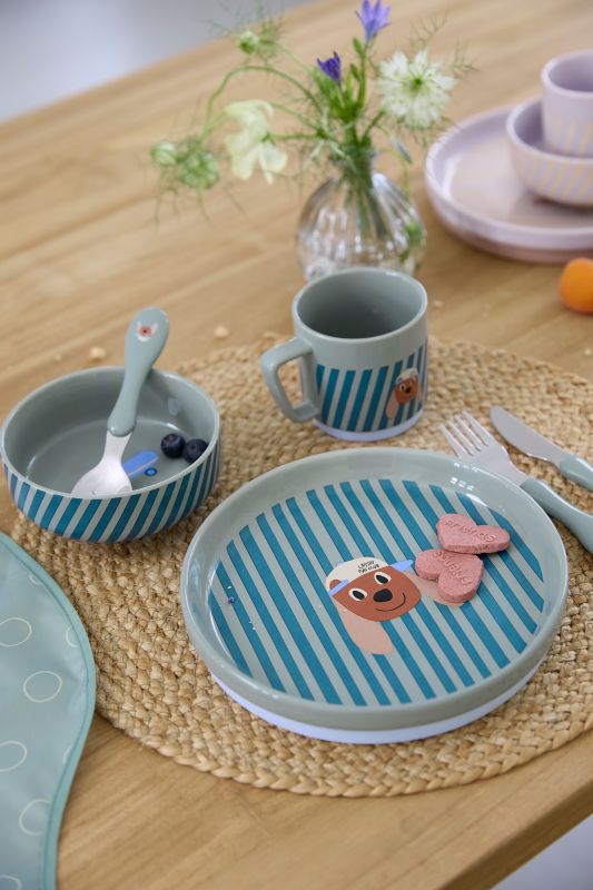 Cet ensemble de vaisselle pour enfants Tiny Team Chien de LÄSSIG, en porcelaine, est doté d’un anneau en silicone amovible pour une meilleure stabilité sur la table. Cet ensemble de vaisselle pour enfants est idéal à partir de 3 ans et convient aussi bien au lave-vaisselle qu’au micro-ondes.