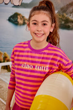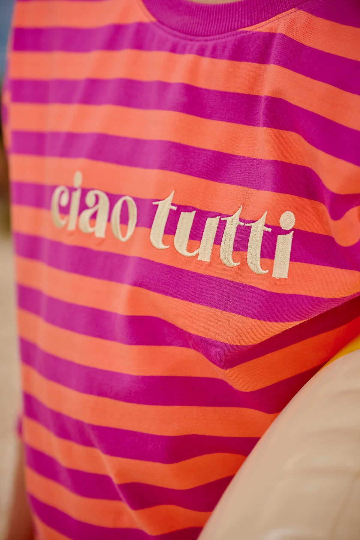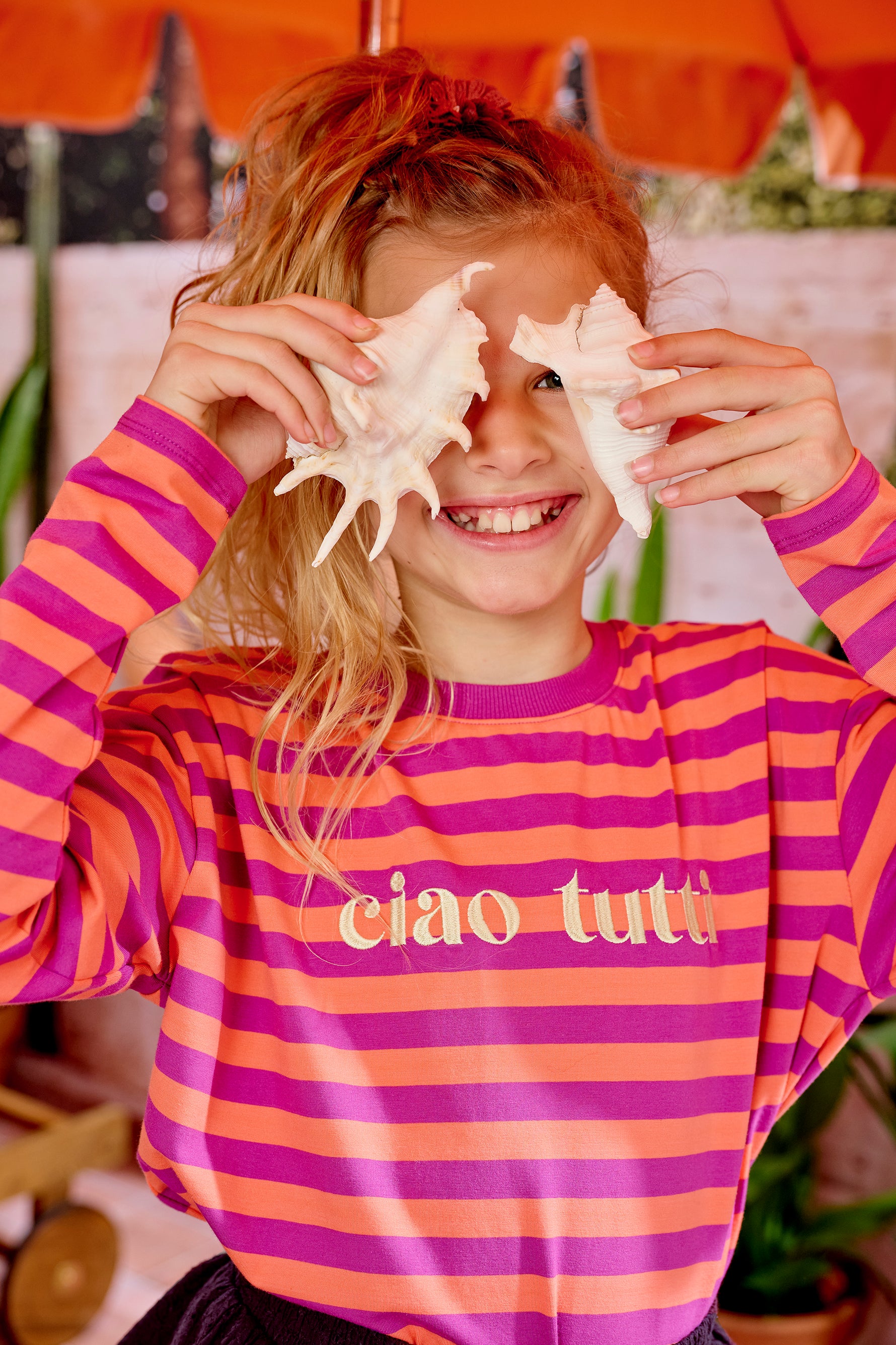 T-shirt Adriana aux rayures colorées et joyeuses qui illuminent vos journées ! Ce modèle à manches longues arbore des teintes éclatantes et vivifiantes pour un style plein de bonne humeur. Parfait pour exprimer votre personnalité avec légèreté et couleur. Un incontournable pour ceux qui aiment apporter de la gaieté à leur garde-robe.
