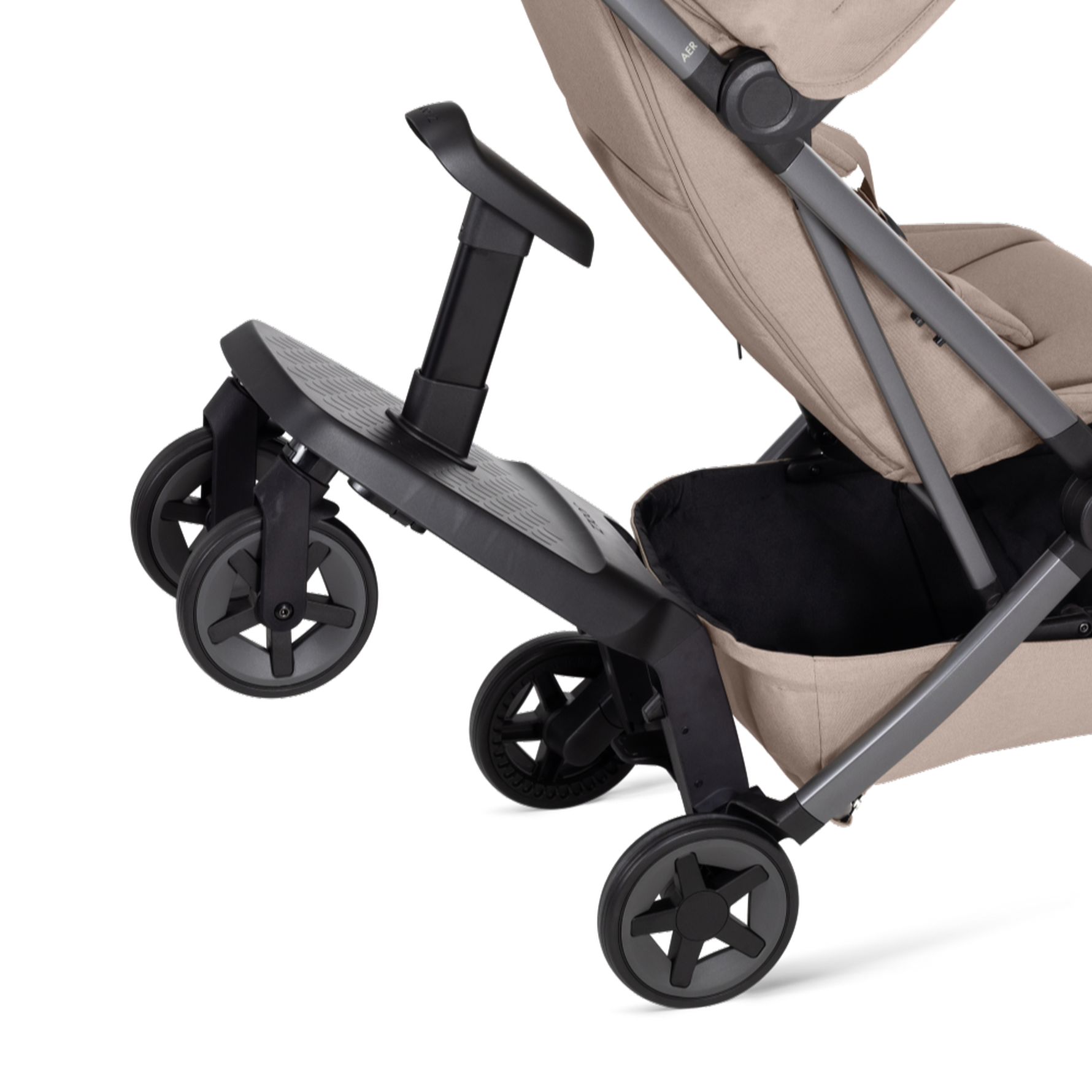 Prêt pour une aventure en famille ? La planche à roulettes Joolz Aer est là pour vous ! C’est l’accessoire parfait pour les parents qui partent avec deux petits. Ajoutez-la en un clic à votre Joolz Aer et votre tout-petit est prêt à rouler, debout ou assis. Votre petit coquin a retrouvé de l’énergie et veut marcher à nouveau ? Il suffit de relever la planche à roulettes et de continuer votre promenade. Est-il temps de rentrer ? Pas besoin de la détacher. Il suffit de plier la planche à roulettes avec votre Joolz Aer en un ensemble compact pour la ranger. Il n’y a pas plus simple !