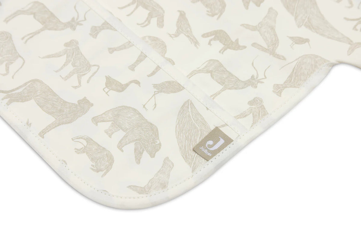 Partez à l'aventure avec ce bavoir imprimé Animals. Ce bavoir imperméable avec manches résistera aux pires dégâts de votre bébé ou bambin en pleine exploration. Attachez facilement le bavoir au cou de votre enfant à l'aide du velcro souple et retirez-le après usage. Disponible en nougat et vert olive.