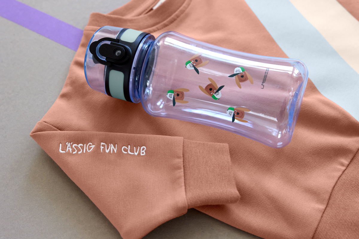 Avec la gourde LÄSSIG Tiny Team, les enfants assoiffés sont parfaitement équipés en déplacement. La bouteille, ornée de motifs colorés, invite les petits à partir à l’aventure.