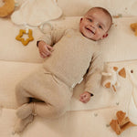 Un gilet merveilleux pour les jours froids ! Ce gilet croisé en maille de couleur sable avec un effet de points subtil est non seulement doux, mais aussi élégant et chaud. Les boutons en bois charmants et le design croisé rendent l'habillage facile. Fait de coton biologique et certifié Oekotex, vous pouvez être sûr que le gilet est doux pour la peau de votre petit. Associez-le en ensemble avec le pantalon assorti et les accessoires pour une tenue complète et confortable. Disponible dans les tailles 44 à 74, pour chaque aventure ; grande ou petite.