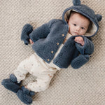Si doux et câlin ! Voici le gilet en peluche adorable pour les moments de confort. Il est aussi chaud que confortable et dispose d'un tissu en peluche Stone Blue avec de jolies oreilles sur la capuche. La doublure douce en coton biologique présente un imprimé intégral ludique Little Goose, et le tissu en peluche est parfait pour les jours plus froids. Les boutons en bois lui donnent une touche classique et naturelle.