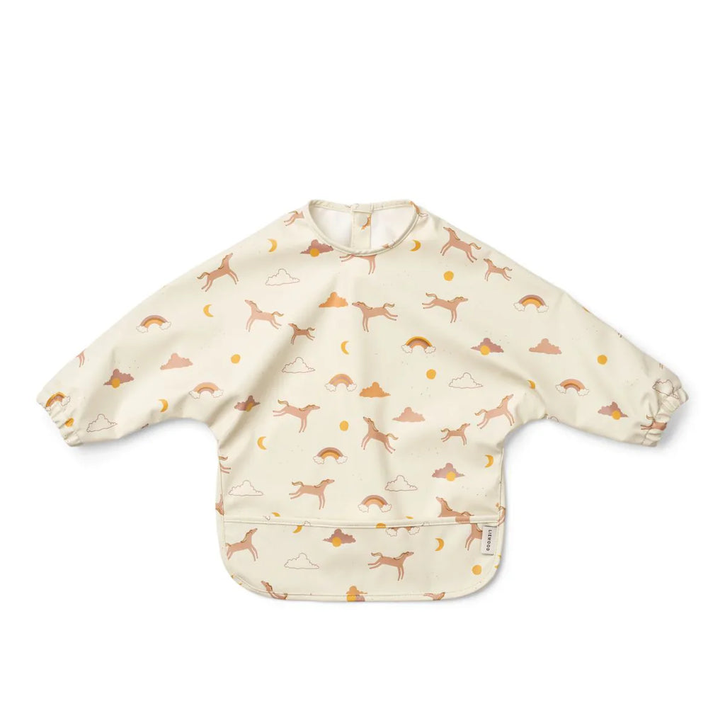 Das Lätzchen mit Ärmeln MERLE - Circus / Sandy ist perfekt für kleine Feinschmecker. Es besteht aus strapazierfähigem, recyceltem Polyester und ist OEKO-TEX GRS-zertifiziert. Es lässt sich leicht reinigen und unterwegs verstauen. Die elastischen Bündchen sorgen für einen perfekten Sitz und die Auffangtasche vorne ist ideal für verschüttete Lebensmittel. Ein praktisches Lätzchen mit langen Ärmeln, leicht und wasserdicht für eine einfache Handhabung.