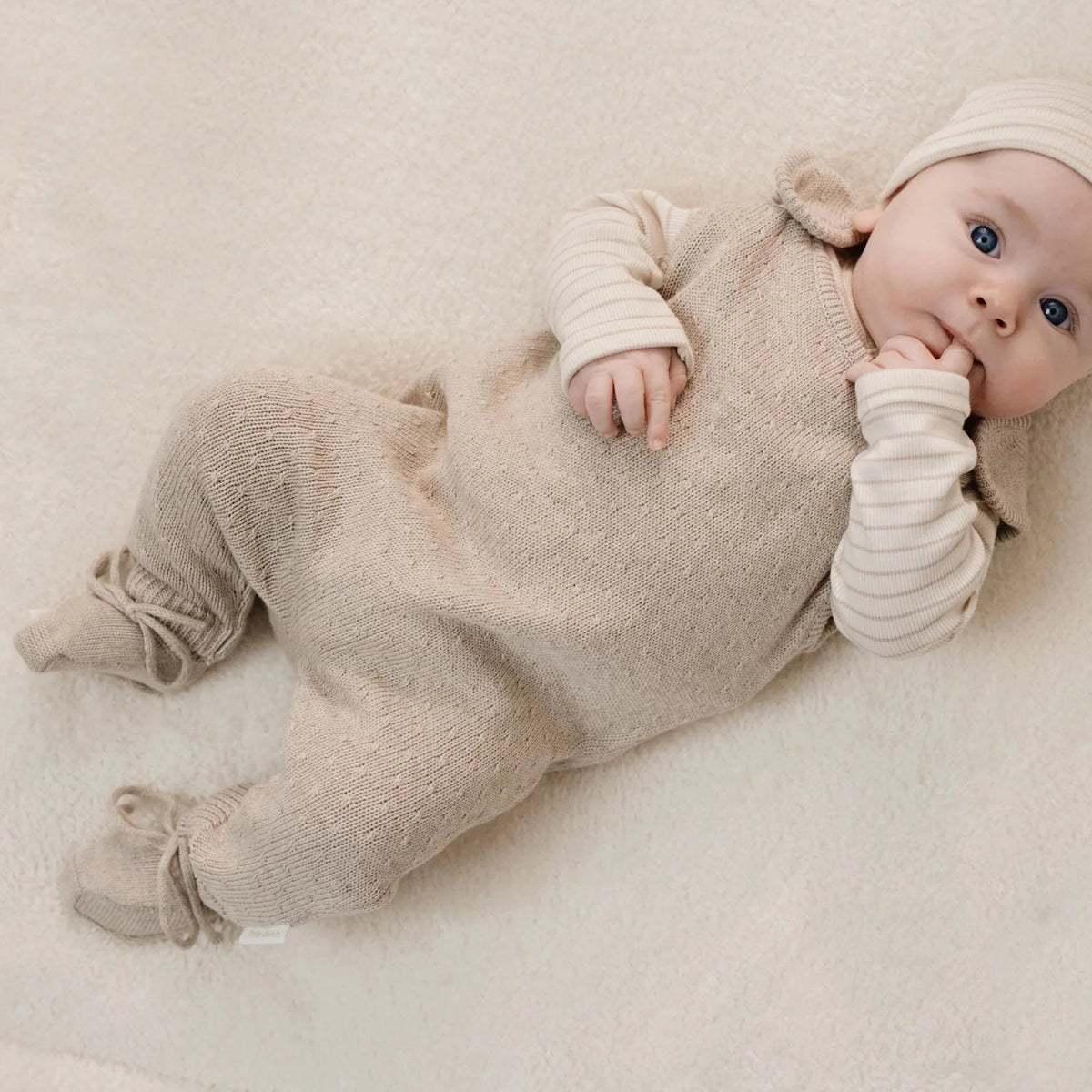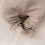Diese weichen, gestrickten Schuhe in einem sanften Beigeton sind perfekt für kleine Füße, die noch die Welt entdecken müssen. Dank der praktischen Schnürsenkel lassen sie sich leicht befestigen, sodass sie nicht jedes Mal verrutschen, wenn Ihr Kind vor Begeisterung herumhüpft. Keine Sorgen mehr wegen verschwundener Schuhe. Erhältlich in den Größen 44/56 und 62/74. Kombinieren Sie sie mit anderen Artikeln aus unserer Neugeborenen-Kollektion.