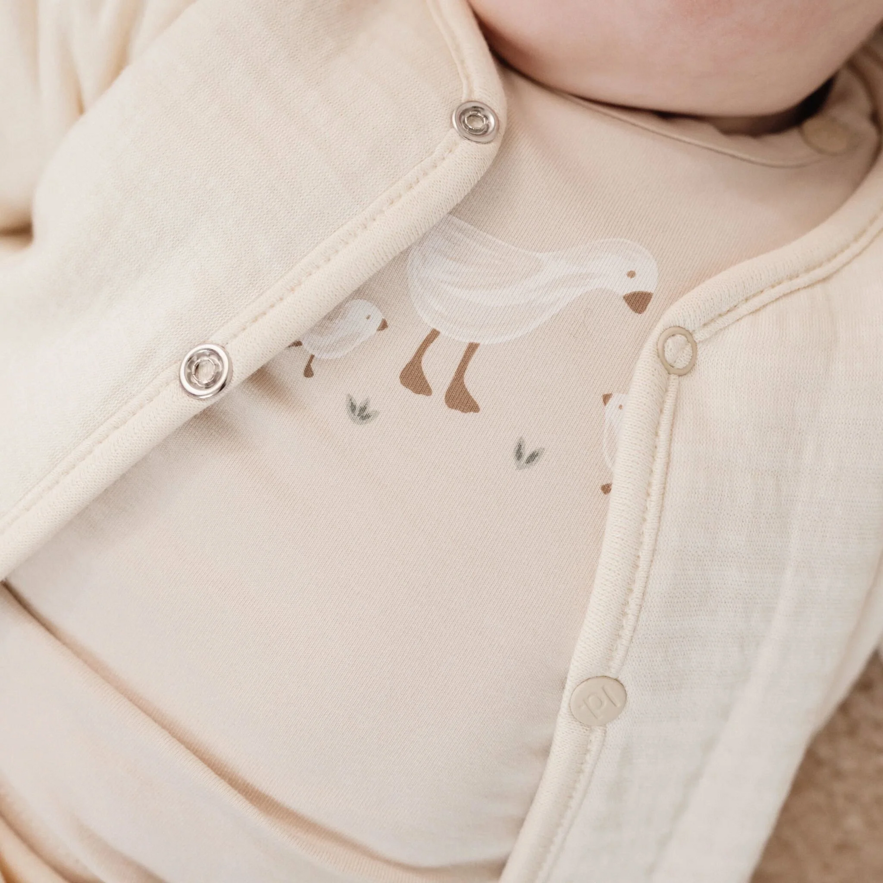 Dieses Langarm-T-Shirt mit einem niedlichen Little Goose-Aufdruck auf der Brust ist eine bequeme und stilvolle Wahl für Ihren Nachwuchs. Die beiden praktischen Knöpfe am Kragen erleichternBezug Ausziehen erheblich. Ideal für einen schnellen Kleiderwechsel. Hergestellt aus weicher Bio-Baumwolle, die hautfreundlich und umweltfreundlich ist. So kann Ihr Kind die Welt mit Stil entdecken.