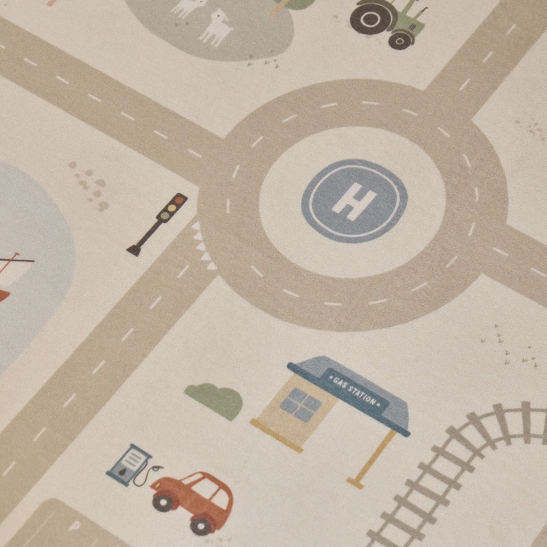 Tauchen Sie mit diesem weichen Spielteppich in warmen, neutralen Farbtönen in eine Welt voller Abenteuer ein. Entdecken Sie gemeinsam mit Ihrem Kind die verschiedenen Motive wie Straßen, Züge und Gewässer. Perfekt kombinierbar mit den Little Dutch-Fahrzeugen für endlosen Spielspaß. Hergestellt aus einem angenehmen Material und ideal für stundenlanges Entdecken und Spielen.