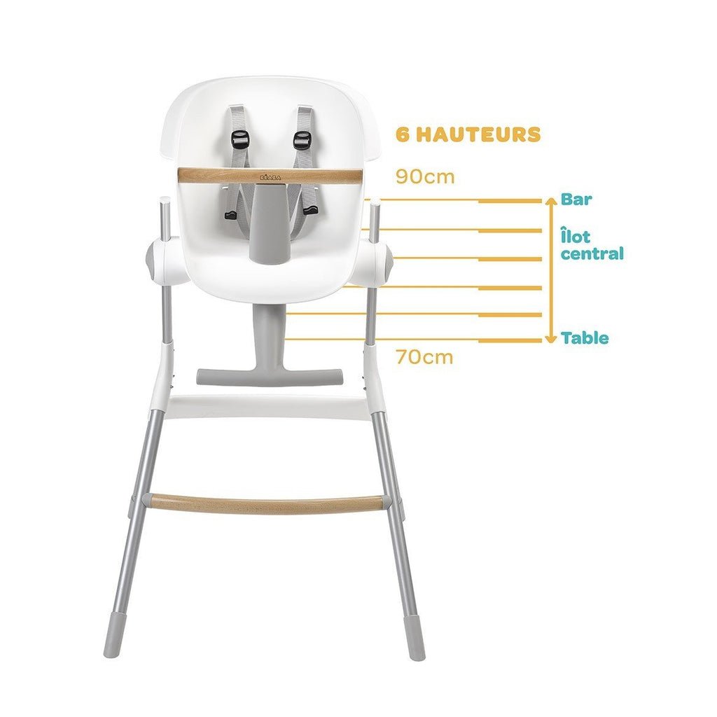 Mit seinem Up & Down-System lässt sich die Höhe in wenigen Sekunden auf 6 Stufen einstellen. Dieser Hochstuhl hat außerdem ein sehr durchdachtes Design, das sich perfekt an die Körperform des Kindes anpasst, um ihm maximalen Komfort zu bieten und ihm eine optimale Position zum Essen mit seinen Eltern zu gewährleisten.