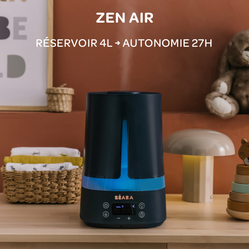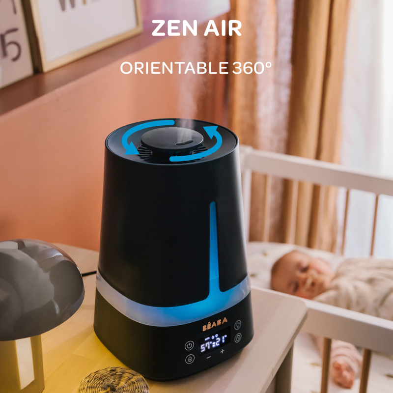 Der Zen Air Luftbefeuchter wurde entwickelt, um Ihrem Baby eine angenehme und gesunde Umgebung zu bieten. Babys sind oft anfällig für Erkältungen, und damit sie besser atmen können, muss ihr Zimmer ausreichend befeuchtet sein. Der Zen Air Luftbefeuchter reguliert die Luftfeuchtigkeit im Raum und sorgt so für optimalen Komfort für Ihr Kind.