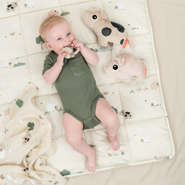 • Sandfarbenes Dotti mit Kontrasten für visuelle Stimulation