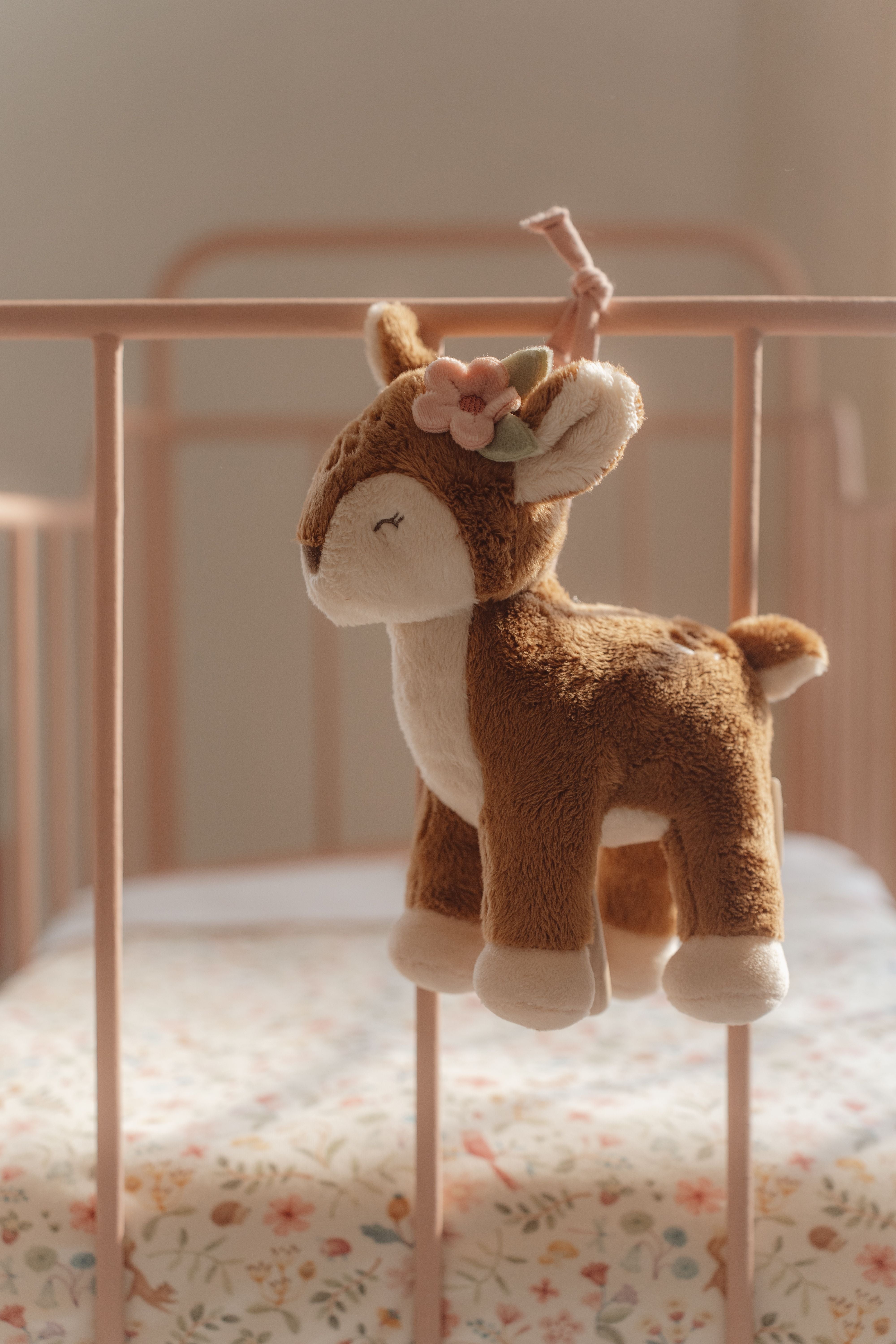 Faites de beaux rêves ! Ce cerf endormi vous guidera vers un pays de rêve rempli d'émerveillement et d'imagination. Les mélodies enchanteresses de cette boîte à musique ludique agrémentent l'heure du coucher. Tirez sur l'anneau en bois et la berceuse apaisante commence à jouer pendant que votre enfant s'endort. Un beau cadeau et un ajout charmant au décor de la chambre d'enfant.