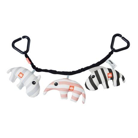 Cette chaîne d'activités de Done by Deer peut être accrochée sur tout support pour amuser bébé avec ses Ozzo l'hippo, Zebee le zébre et Nozo le rhino.