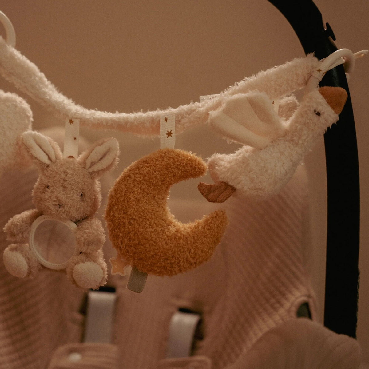 Un compagnon de jeu pour la route. Le Wagenspanner Newborn Naturals rend chaque trajet plus amusant avec ses petites figurines douces et son léger bruit de hochet. Facile à attacher à la poussette, pour que votre petit ait toujours quelque chose à regarder et à découvrir. Fabriqué à partir de matériaux doux dans des tons apaisants, parfait pour les petites mains à saisir et à sentir. Un doux compagnon pour des sorties joyeuses !