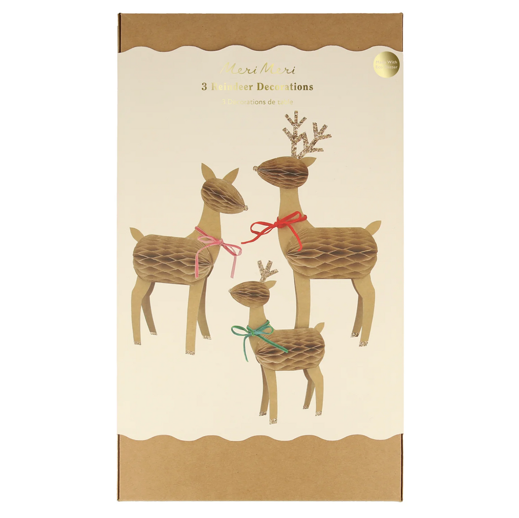 • Les trois rennes sont fabriqués à partir de la carte Kraft de haute qualité, avec des détails en nid d'abeille
