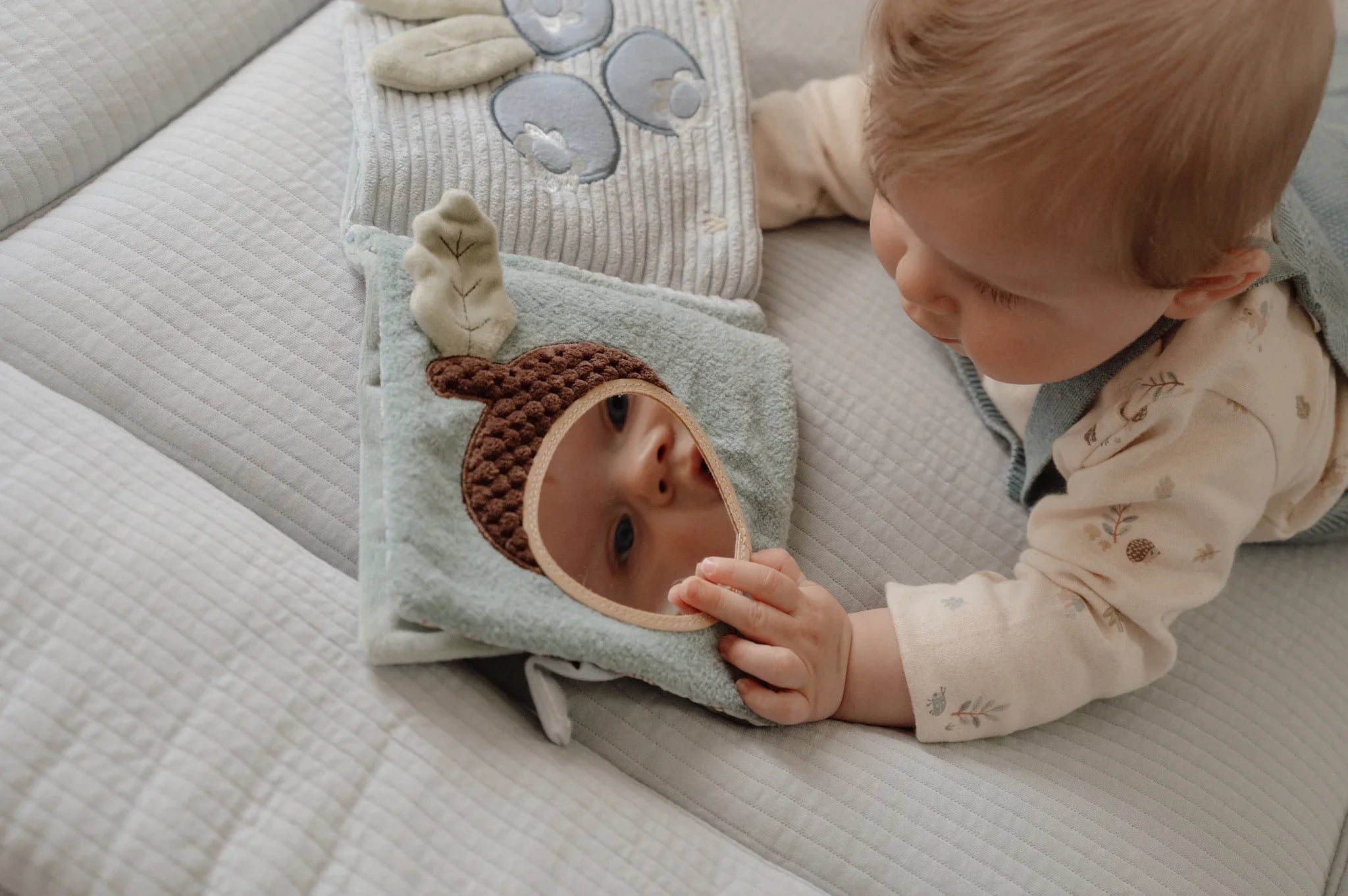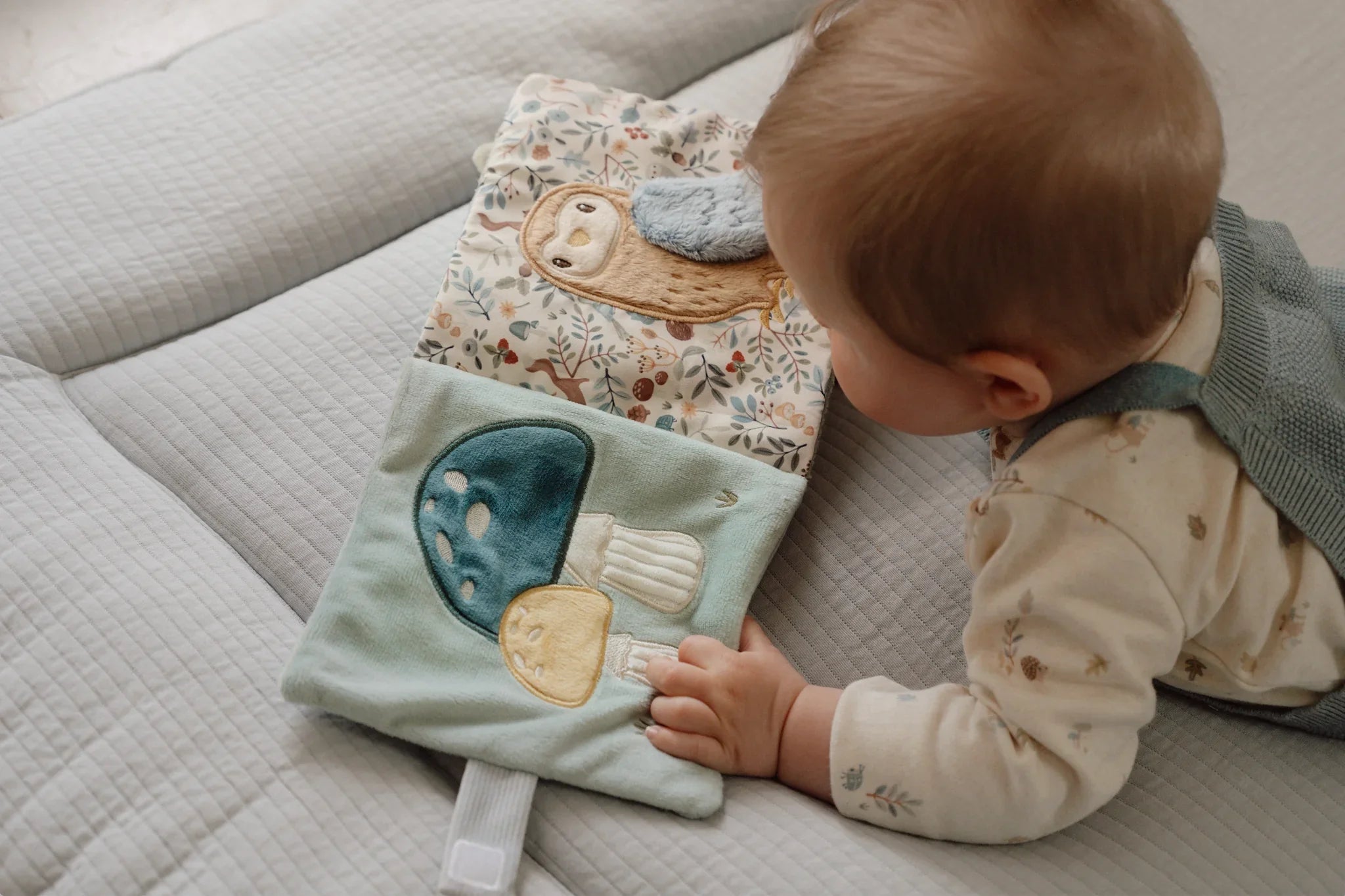 On ne s'ennuie jamais avec ce livre d'activités à toucher et à sentir sur les amis de la forêt. Le sympathique renard vous invite à regarder de plus près la forêt enchantée. Il y a beaucoup de matériaux et d'activités différents à explorer, comme un miroir, un hochet et des jouets qui se froissent. Le livret souple comporte également différentes étiquettes à toucher. Ce jeu stimule non seulement les sens, mais il aide aussi à développer la coordination œil-main.