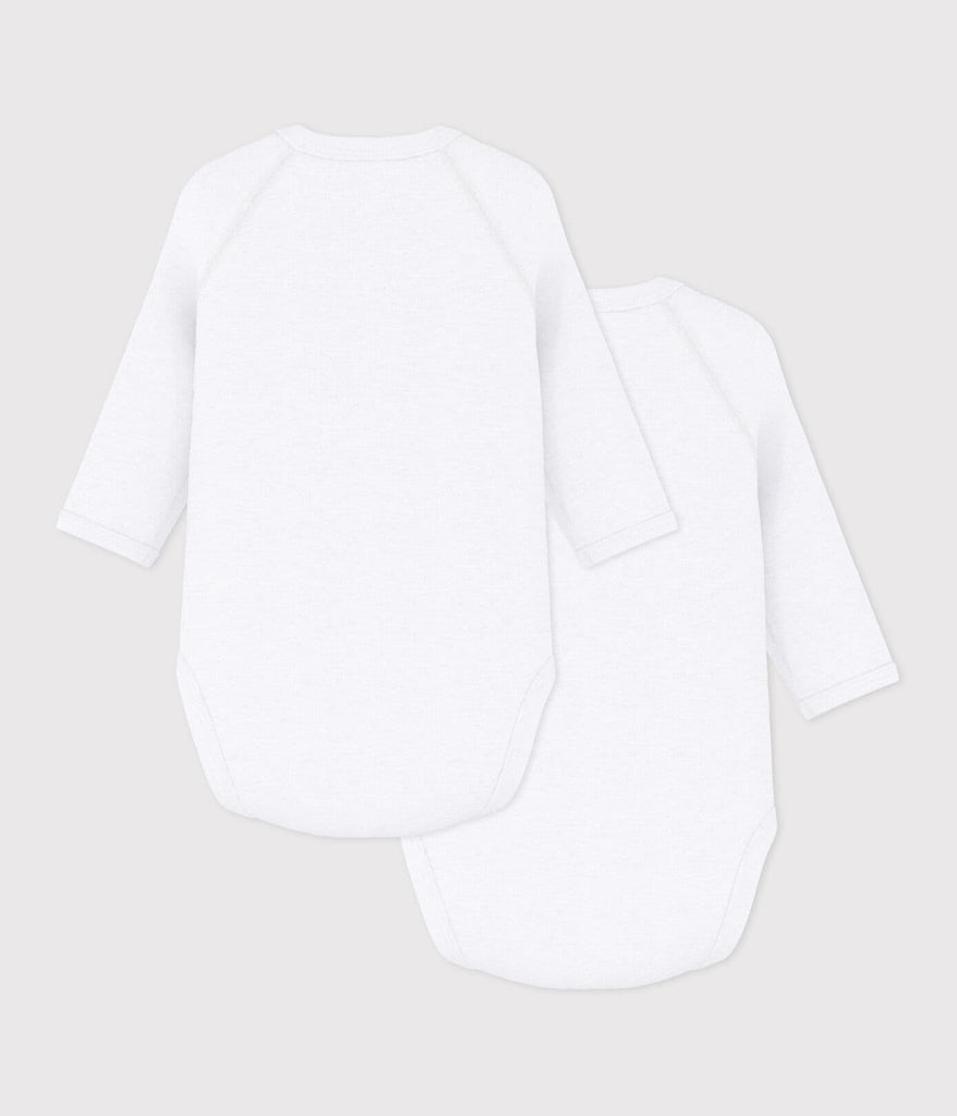 Lot de 2 bodies croisés manches longues en coton unis bébé (tailles 0-3m)