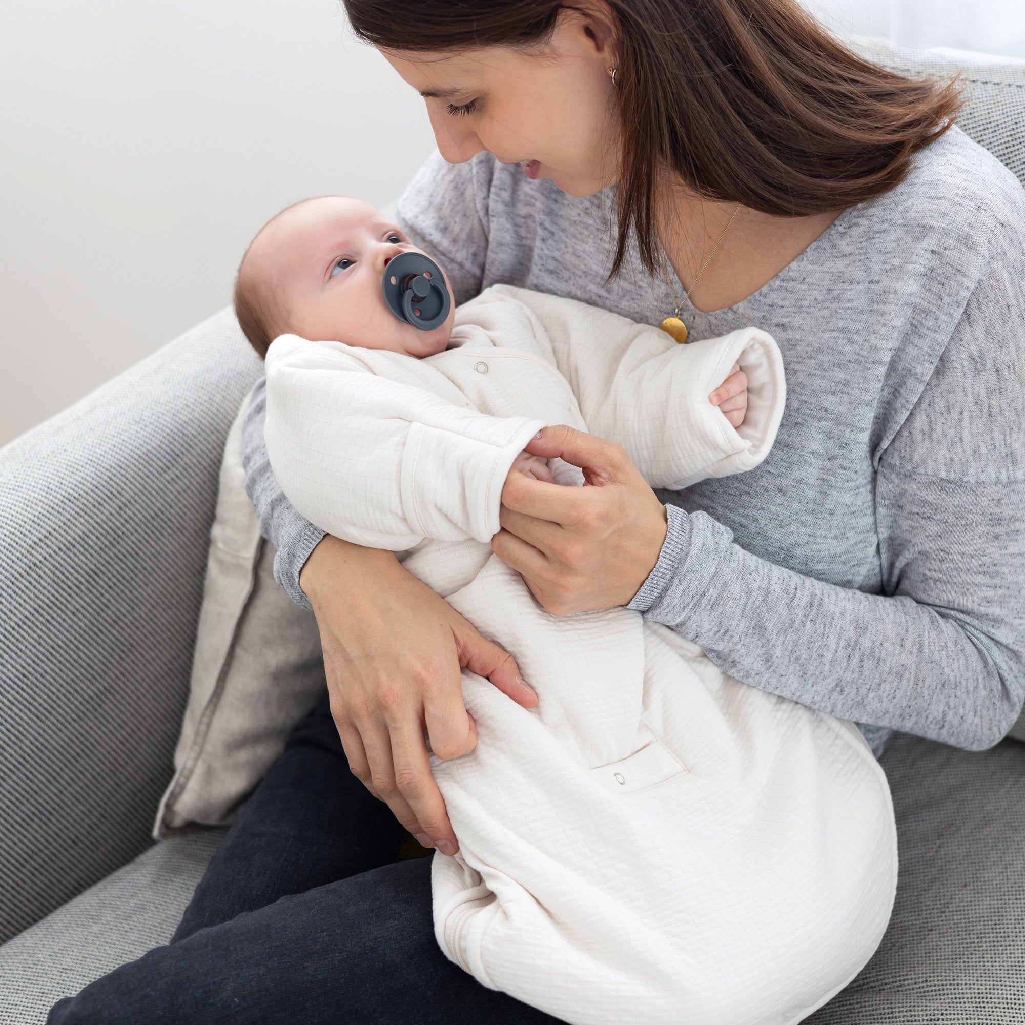 Bien chaud, le tetra jersey ouatiné et doublé de coton procure le bien-être thermique idéal pour une température de chambre entre 15° et 18°C.