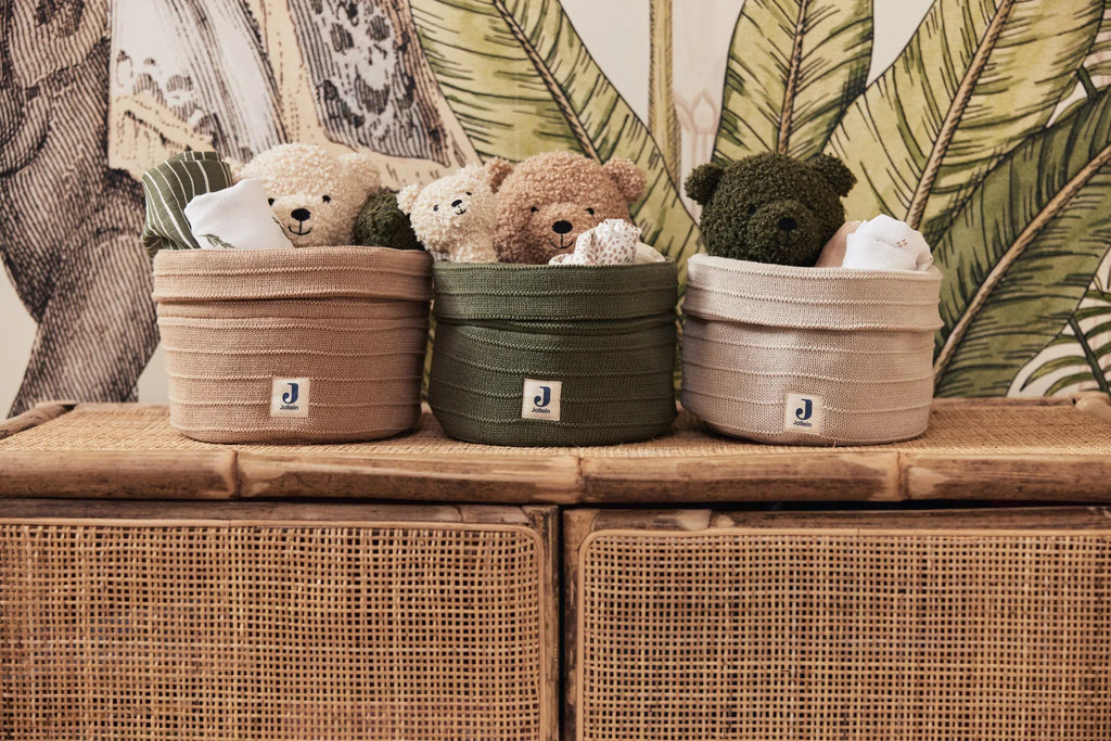 Panier pratique en beau tricot pour ranger des objets. Pratique sur la commode pour les petits articles de soins comme la lotion pour le corps, le kit de manucure, la brosse et le thermomètre. Ou juste très pratique pour garder le tiroir de la commode bien rangé. Un panier de chaussettes, un panier de pantoufles, un panier de bandeaux pour les cheveux et un panier de gants de toilette... tout bien rangé, tu sais toujours où se trouvent les choses. On trouve toujours tout.
