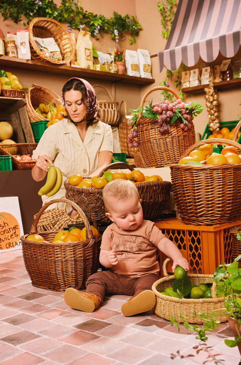 Un pantalon original et amusant avec son imprimé "Crazy Coconut". En 97% coton et 3% élasthanne, il allie confort et style avec sa belle teinte brune. Disponible en taille 50-74.