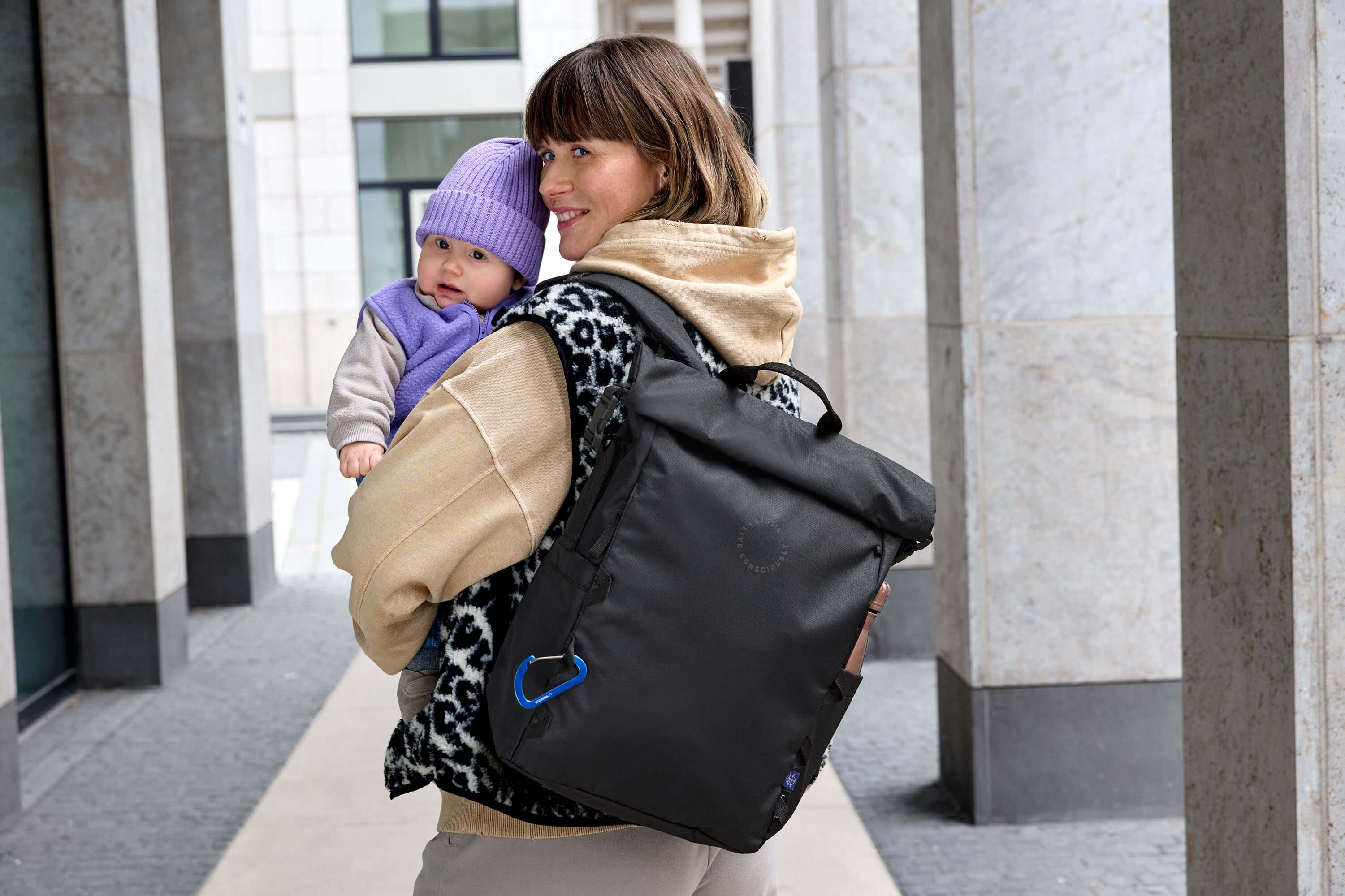 Le sac à dos Outdoor Rolltop Backpack est le compagnon parfait pour le quotidien de la famille et se combine à merveille avec les accessoires à langer LÄSSIG.
