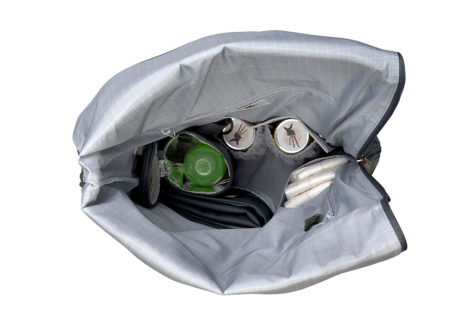 La fermeture éclair sur tout le côté permet d’accéder rapidement au contenu. Un compartiment pour linge humide devant, un compartiment zippé au dos ainsi que des accessoires pratiques, en font le sac idéal pour les parents.