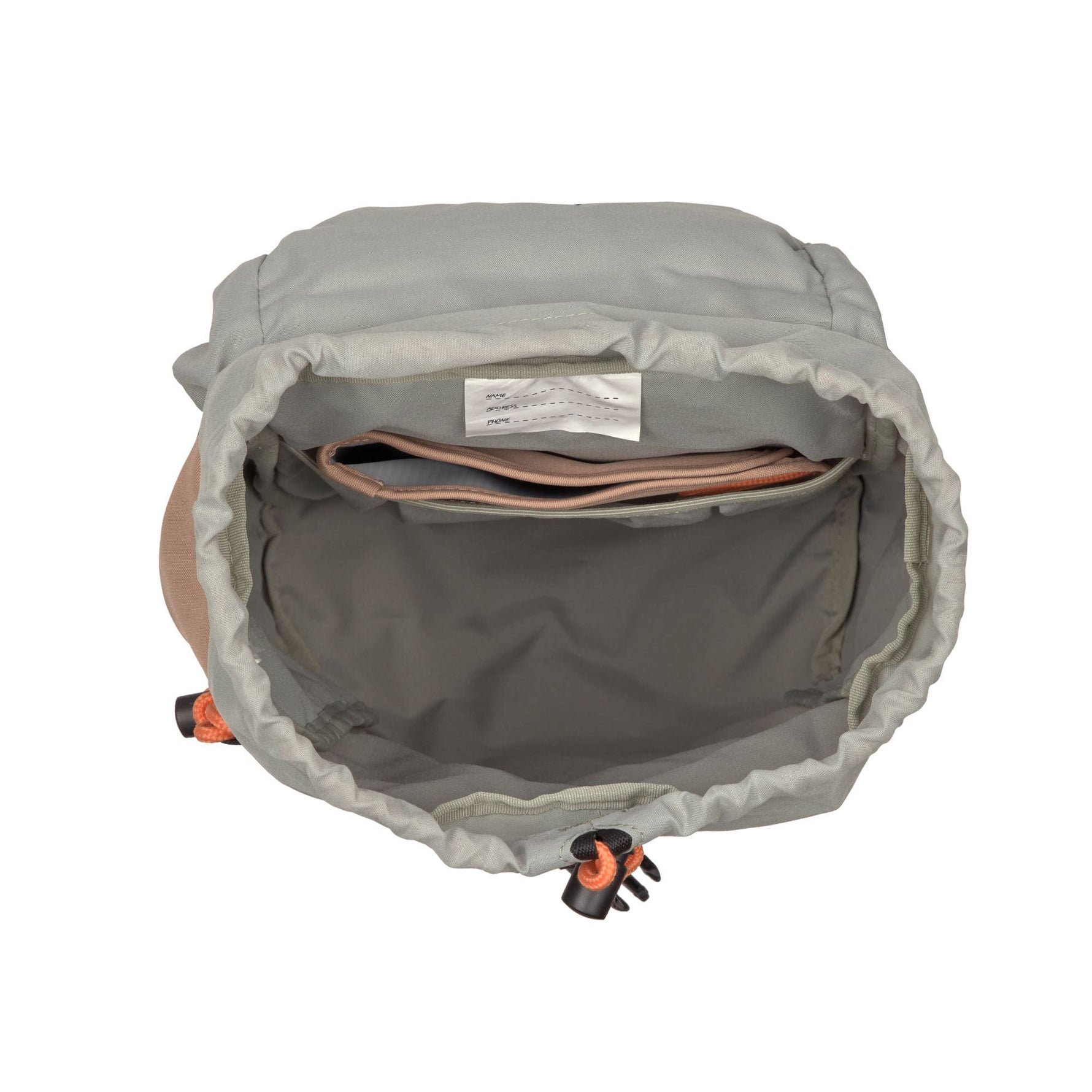 Ce modèle plus grand, aux couleurs sobres et naturelles, d’une capacité de 14 litres, offre de nombreuses options très pratiques pour les amateurs de grand air : une protection anti-pluie intégrée avec fixation, un coussin avec isolation thermique ainsi que des sangles extérieures réglables pour les vestes ou vêtements de plein air.