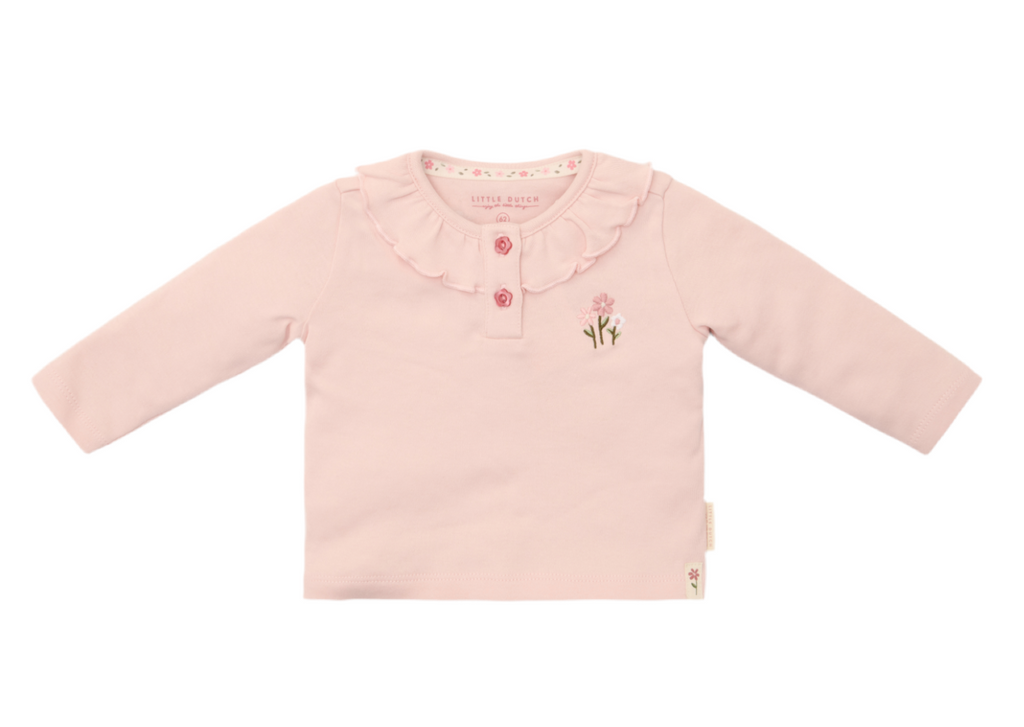 Célébrez chaque jour avec style grâce à ce T-shirt à manches longues Blossom en douce coton biologique et ses détails charmants. Le délicat volant au col et les jolis boutons en forme de fleurs ajoutent une touche de gaieté et de douceur, tandis que la broderie délicate sur la poitrine complète l'ensemble enchanteur. Tailles 50 à 74 disponibles. Parfait pour compléter la collection Fairy Garden !