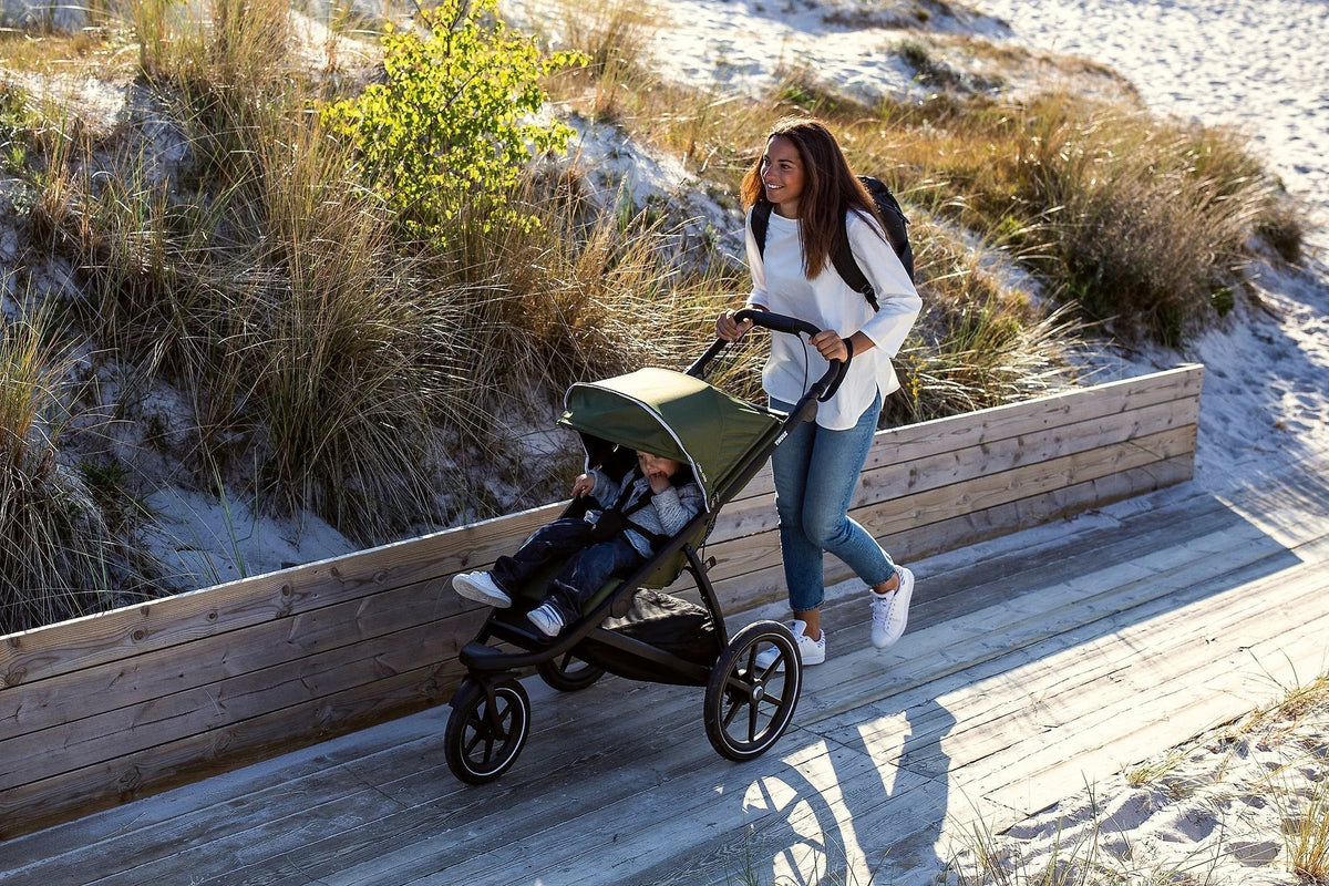 Poussette tout-terrain dotée d'un design léger et élégant. Elle est idéale pour les explorations en milieu urbain ou les déplacements sur votre parcours préféré. Elle est confortable pour les enfants et ergonomique pour les parents !